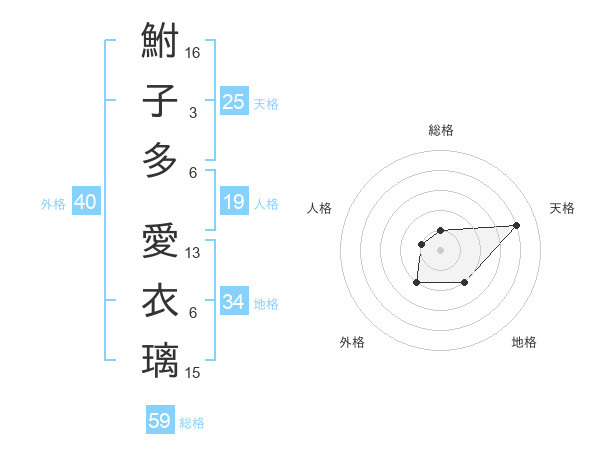 鮒子多 愛衣璃さんの天格は25画の4点!