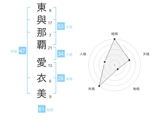 東與那覇 愛衣美さんを姓名の画数から五運を鑑定