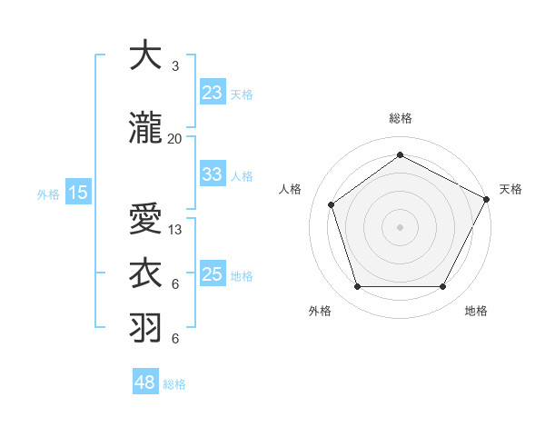 大瀧 愛衣羽さんを姓名の画数から五運を鑑定