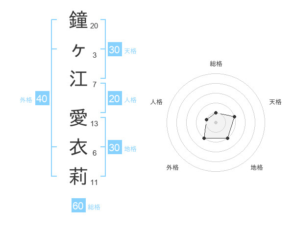 鐘ヶ江 愛衣莉さんの総格は60画の1点!