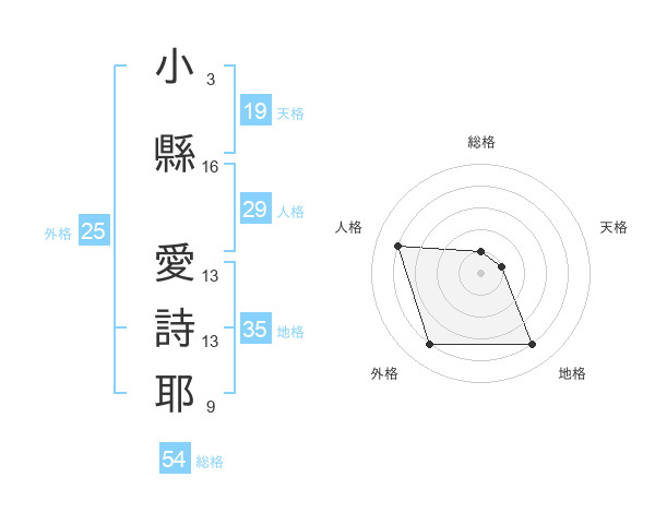 小縣 愛詩耶さんを姓名の画数から五運を鑑定