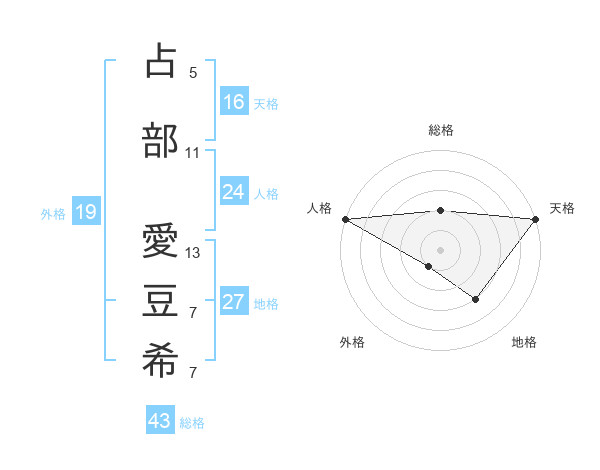 占部 愛豆希さんを姓名の画数から五運を鑑定