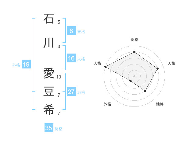 石川 愛豆希さんを姓名の画数から五運を鑑定