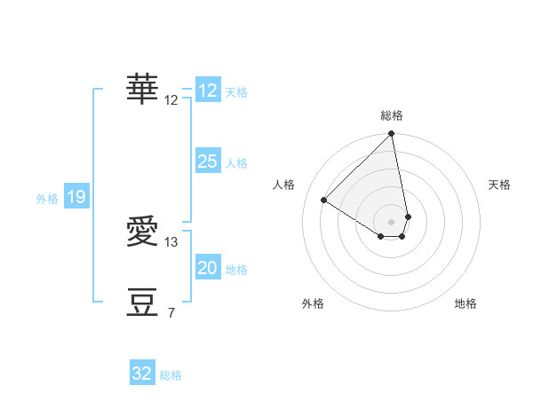 華 愛豆さんの総格は32画の5点!