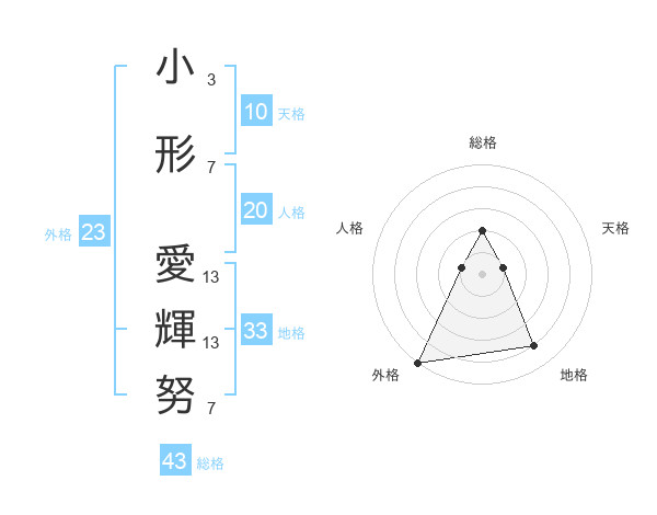 小形 愛輝努さんを姓名の画数から五運を鑑定