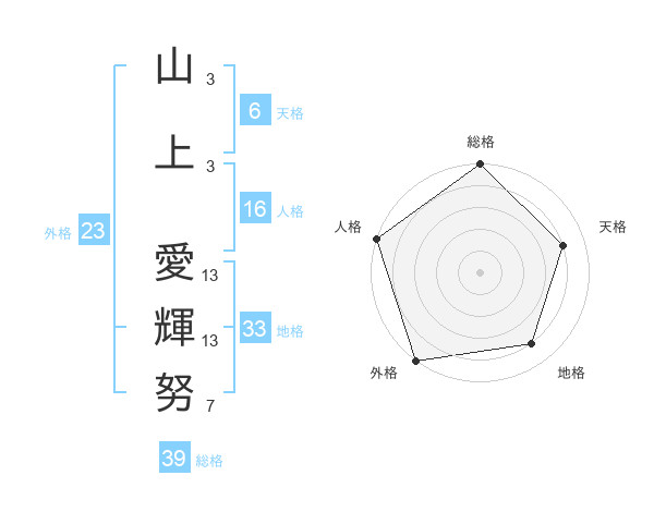山上 愛輝努さんの総格は39画の5点!
