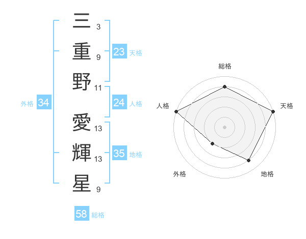 三重野 愛輝星さんを姓名の画数から五運を鑑定