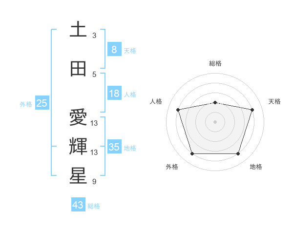 土田 愛輝星さんを姓名の画数から五運を鑑定