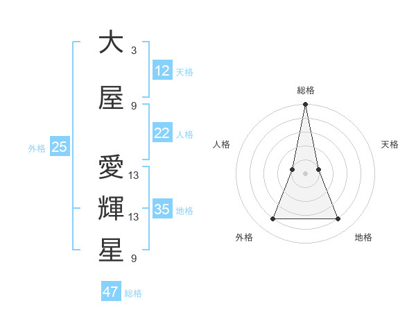 大屋 愛輝星さんの総格は47画の5点!