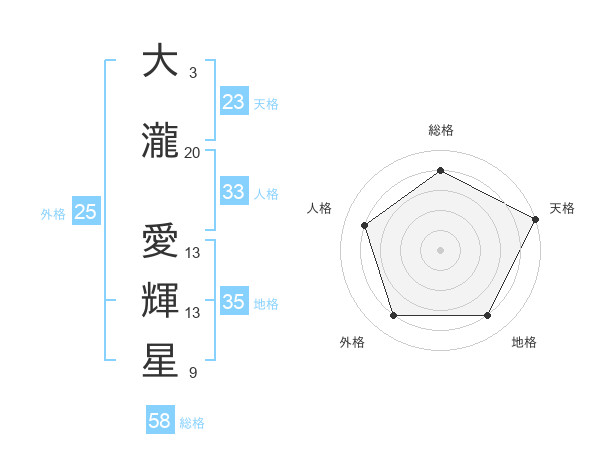 大瀧 愛輝星さんを姓名の画数から五運を鑑定