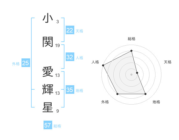 小関 愛輝星さんの総格は57画の4点