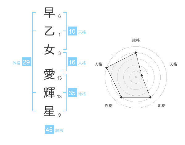早乙女 愛輝星さんの総格は45画の4点!