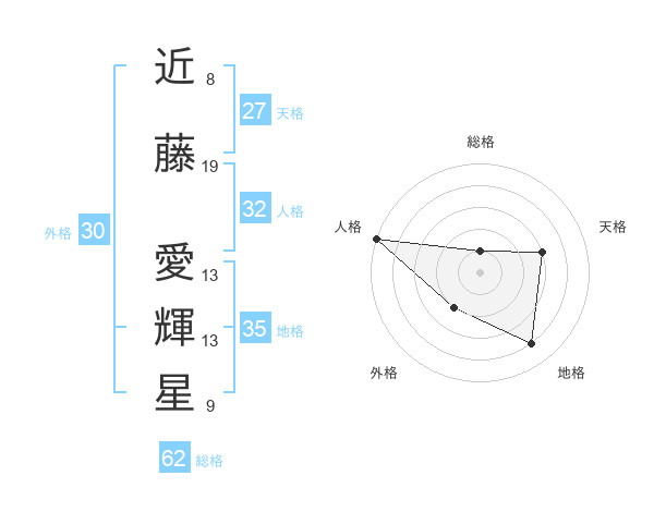 近藤 愛輝星さんを姓名の画数から五運を鑑定