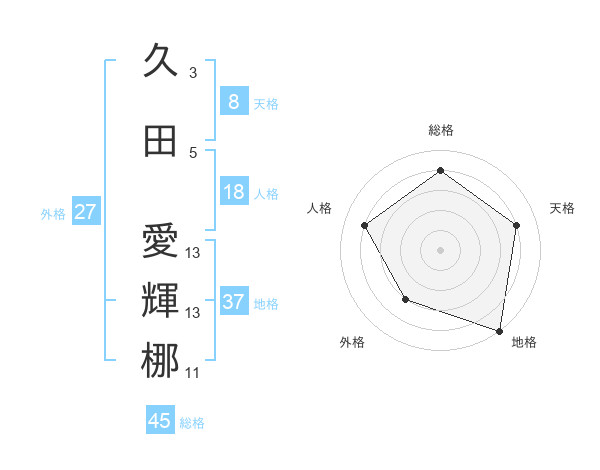 久田 愛輝梛さんの総格は45画の4点!