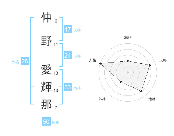 仲野 愛輝那さんを姓名の画数から五運を鑑定