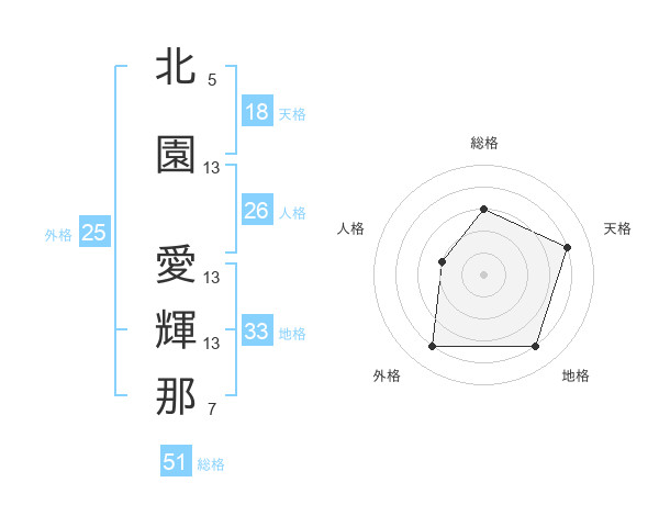 北園 愛輝那さんを姓名の画数から五運を鑑定
