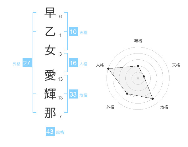 早乙女 愛輝那さんを姓名の画数から五運を鑑定