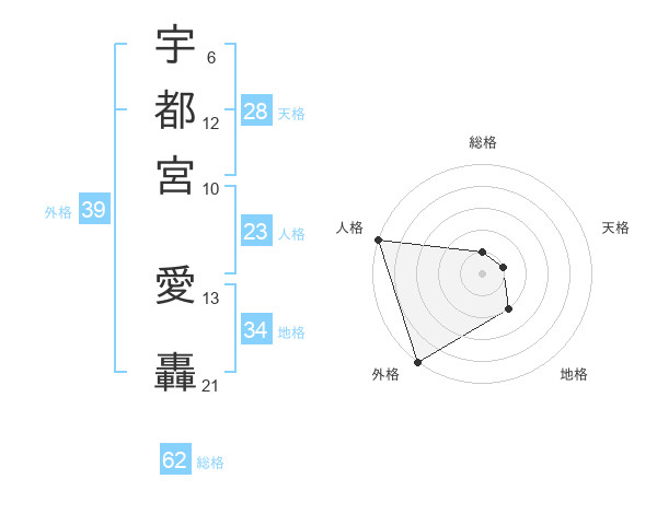 宇都宮 愛轟さんの総格は62画の1点!