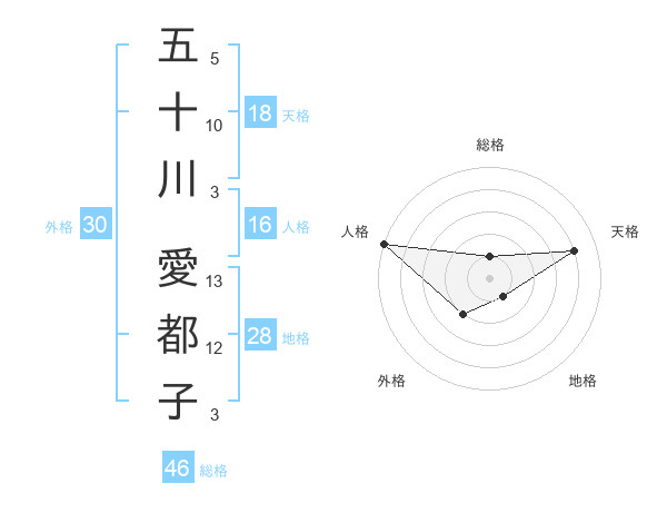 五十川 愛都子さんを姓名の画数から五運を鑑定