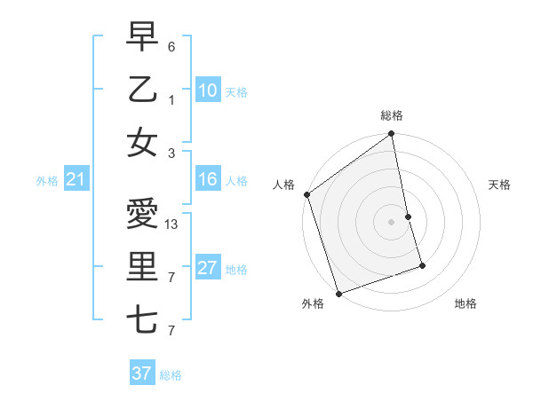 早乙女 愛里七さんの総格は37画の5点!