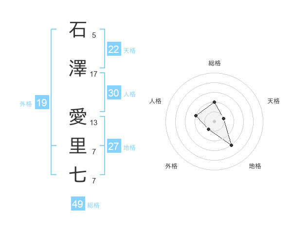 石澤 愛里七さんの総格は49画の2点!