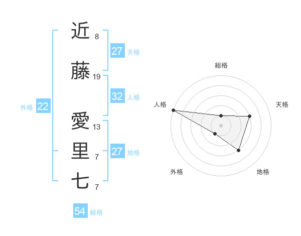 近藤 愛里七さんを姓名の画数から五運を鑑定