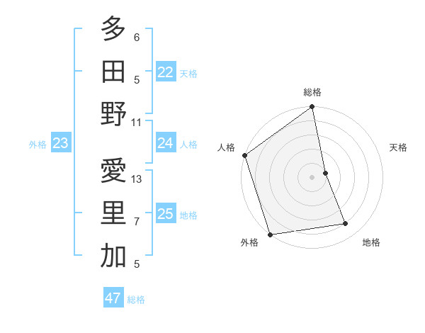 多田野 愛里加さんを姓名の画数から五運を鑑定