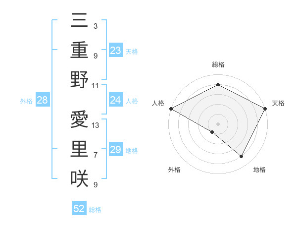 三重野 愛里咲さんを姓名の画数から五運を鑑定