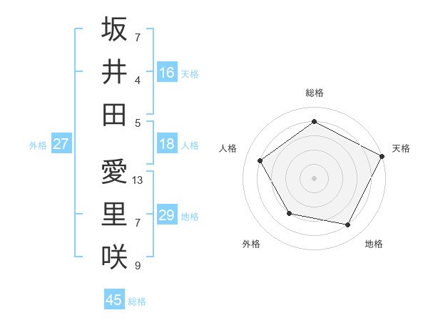 坂井田 愛里咲さんを姓名の画数から五運を鑑定