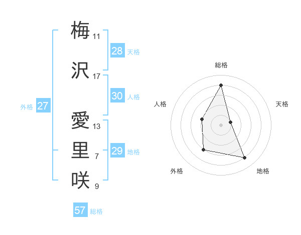 梅沢 愛里咲さんを姓名の画数から五運を鑑定