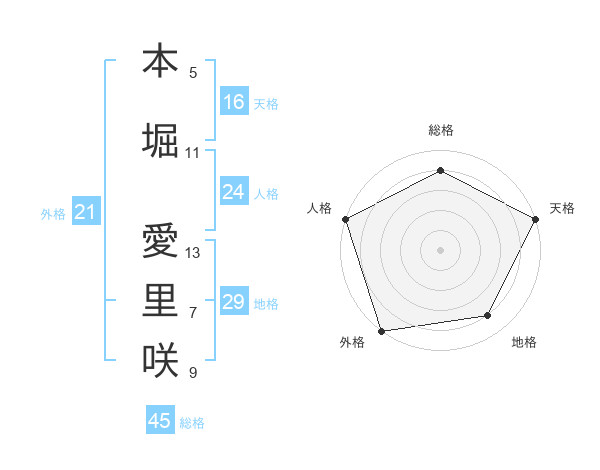本堀 愛里咲さんの総格は45画の4点!