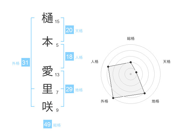 樋本 愛里咲さんを姓名の画数から五運を鑑定