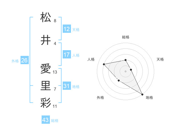 松井 愛里彩さんを姓名の画数から五運を鑑定