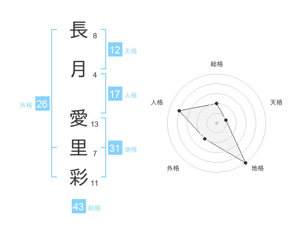 長月 愛里彩さんを姓名の画数から五運を鑑定