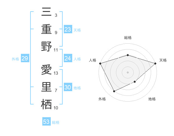 三重野 愛里栖さんを姓名の画数から五運を鑑定