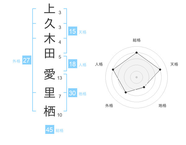 上久木田 愛里栖さんを姓名の画数から五運を鑑定