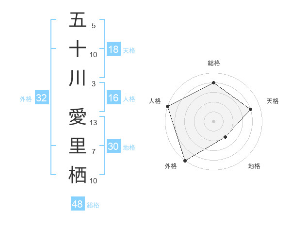 五十川 愛里栖さんを姓名の画数から五運を鑑定