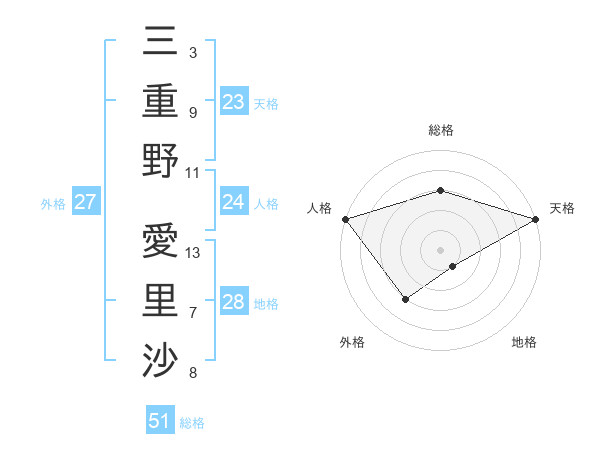 三重野 愛里沙さんの総格は51画の3点!