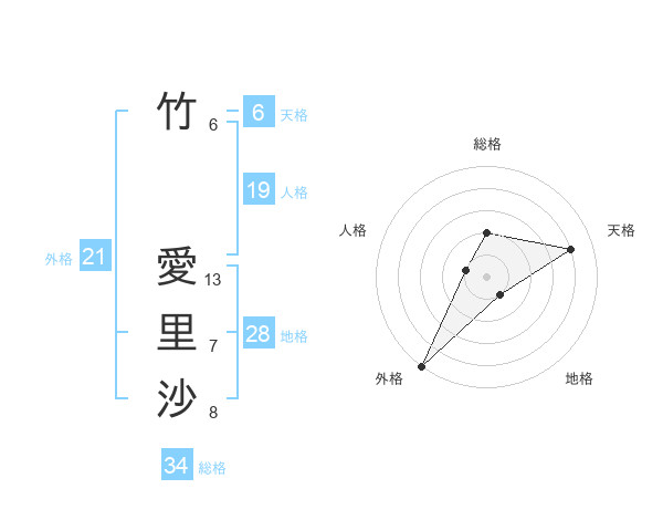 竹 愛里沙さんの外格は21画の5点!