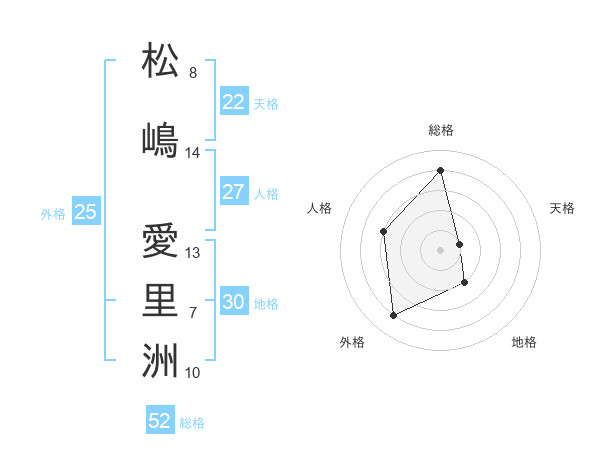 松嶋 愛里洲さんの総格は52画の4点!
