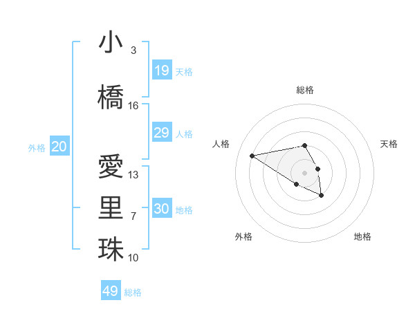 小橋 愛里珠さんを姓名の画数から五運を鑑定