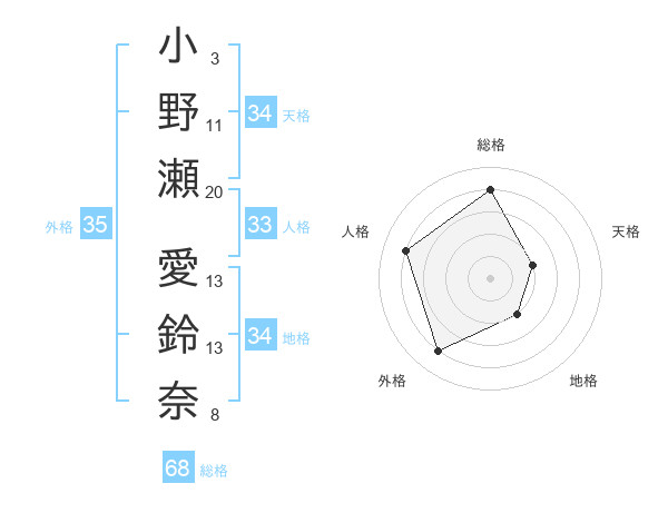 小野瀬 愛鈴奈さんの天格は34画の2点!