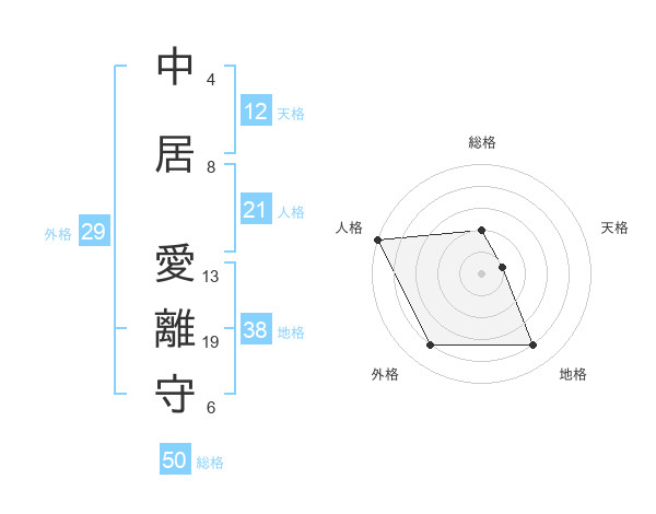 中居 愛離守さんを姓名の画数から五運を鑑定