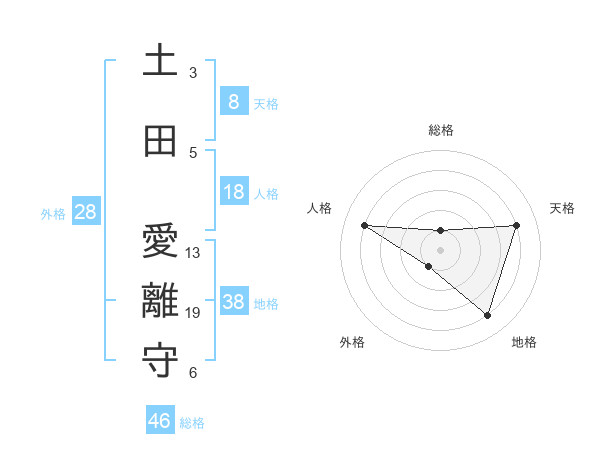 土田 愛離守さんを姓名の画数から五運を鑑定