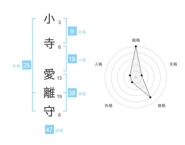 小寺 愛離守さんの総格は47画の5点!