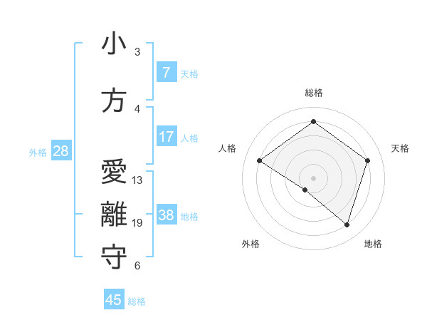 小方 愛離守さんを姓名の画数から五運を鑑定