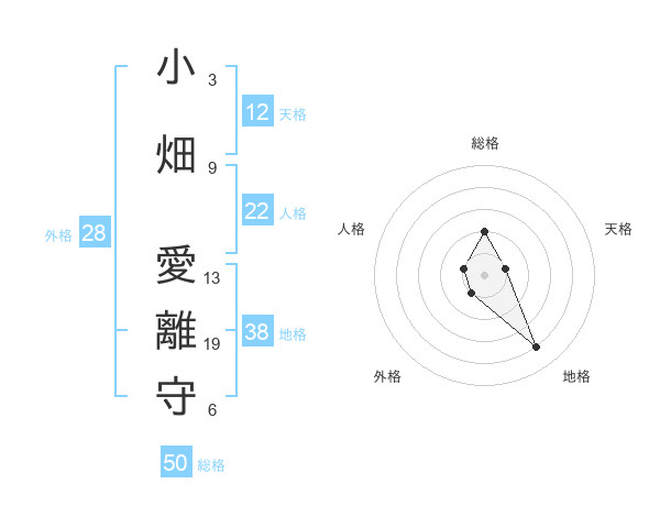 小畑 愛離守さんを姓名の画数から五運を鑑定
