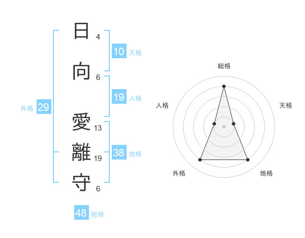 日向 愛離守さんを姓名の画数から五運を鑑定