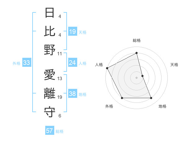 日比野 愛離守さんを姓名の画数から五運を鑑定