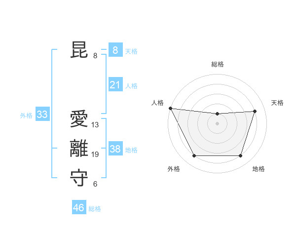 昆 愛離守さんを姓名の画数から五運を鑑定